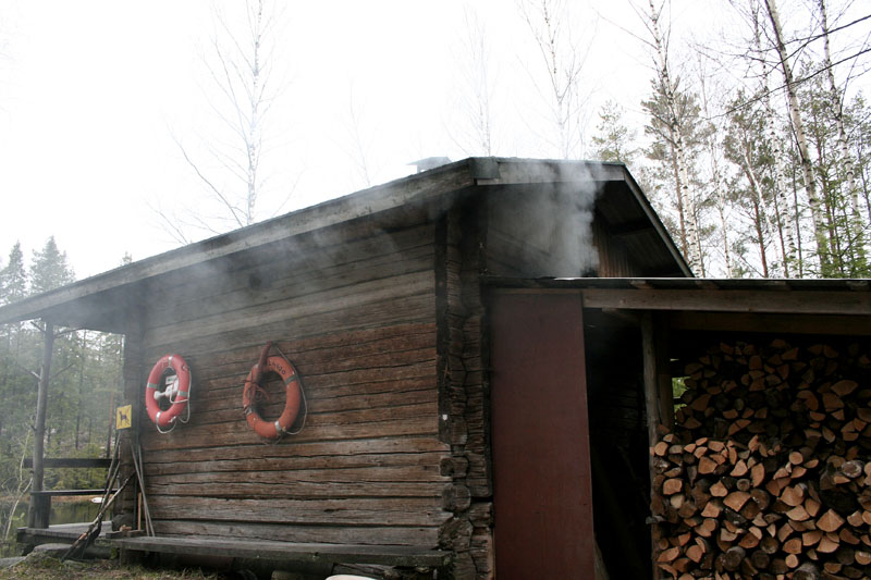 Majan vieressä on lampi, savusauna ja nylkykatos, jossa kylmäsäilytystilat.